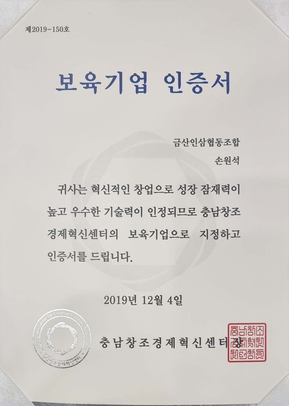 보육기업 인증서