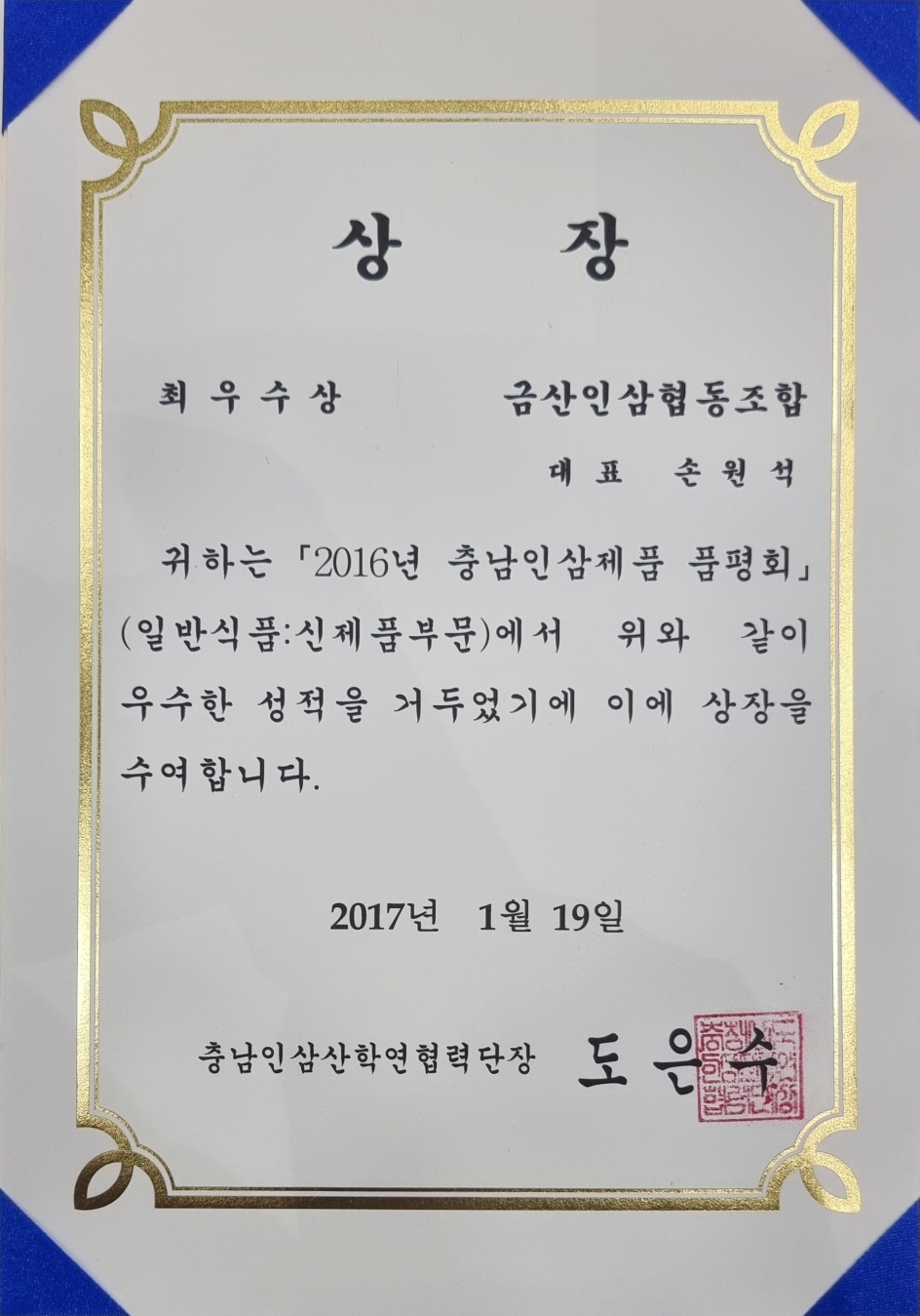 충남인삼제품 품평회 최우수상